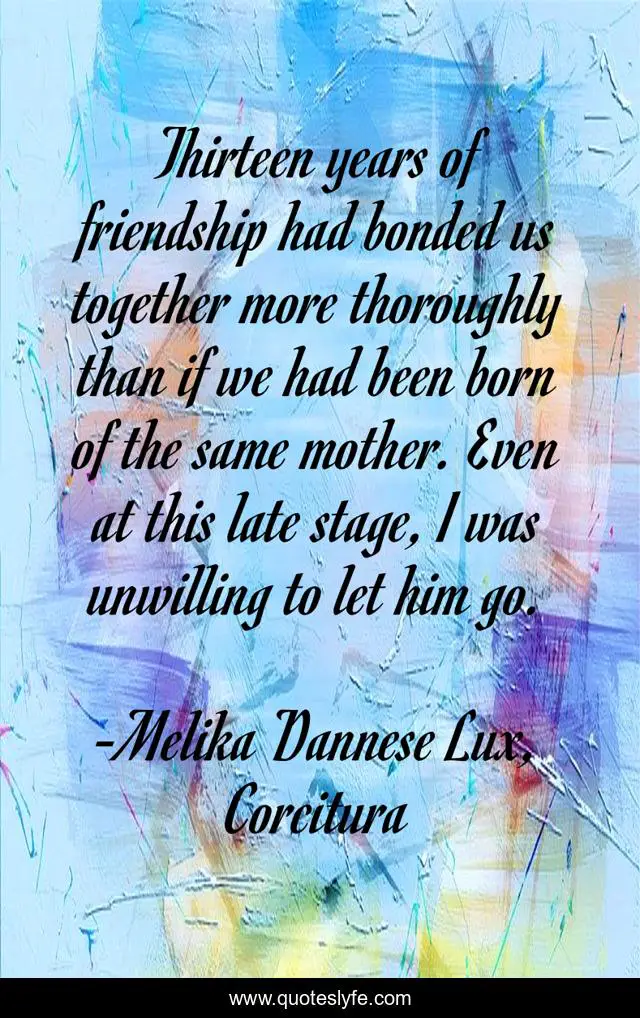 "Melika Dannese Lux, Corcitura Quotes." Quoteslyfe.com, 2025. Sat. 06 Dec. 2025. <https://www.quoteslyfe.com/quote/Thirteen-years-of-friendship-had-bonded-us-175033>.