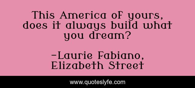This page presents the quote "This America of yours, does it always build what you dream?". Author of this quote is Laurie Fabiano, Elizabeth Street. .