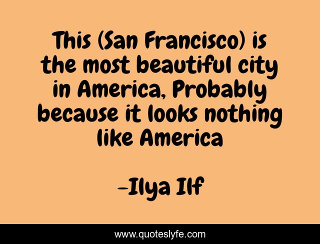 This page presents the quote "This (San Francisco) is the most beautiful city in America, Probably because it looks nothing like America". Author of this quote is Ilya Ilf. This quote is about travelogue, america, humor, 1935,.