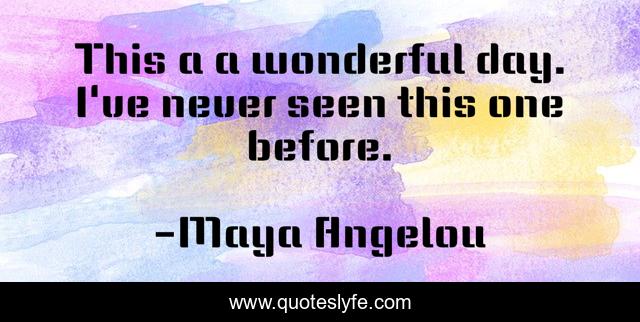 "Maya Angelou Quotes." Quoteslyfe.com, 2025. Sat. 06 Dec. 2025. <https://www.quoteslyfe.com/quote/This-a-a-wonderful-day-I-ve-180382>.