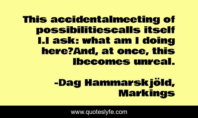 "Dag Hammarskjöld, Markings Quotes." Quoteslyfe.com, 2025. Sat. 06 Dec. 2025. <https://www.quoteslyfe.com/quote/This-accidentalmeeting-of-possibilitiescalls-itself-I-I-141516>.