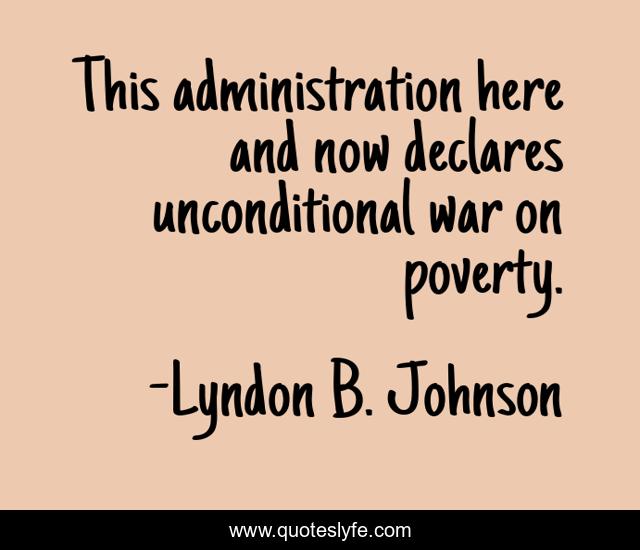 This page presents the quote "This administration here and now declares unconditional war on poverty.". Author of this quote is Lyndon B. Johnson. This quote is about now, poverty, here,.