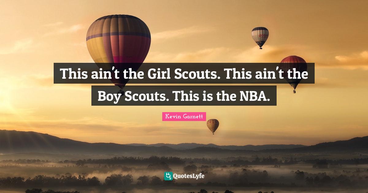 This page presents the quote "This ain't the Girl Scouts. This ain't the Boy Scouts. This is the NBA.". Author of this quote is Kevin Garnett. This quote is about girl, boys, nba,.