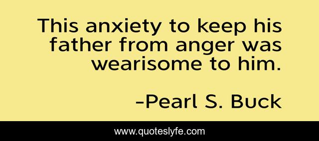 This page presents the quote "This anxiety to keep his father from anger was wearisome to him.". Author of this quote is Pearl S. Buck. This quote is about maturation, parenthood,.