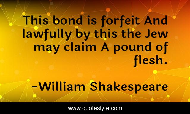 This page presents the quote "This bond is forfeit And lawfully by this the Jew may claim A pound of flesh.". Author of this quote is William Shakespeare. .