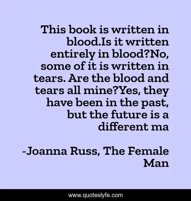 "Joanna Russ, The Female Man Quotes." Quoteslyfe.com, 2025. Sat. 06 Dec. 2025. <https://www.quoteslyfe.com/quote/This-book-is-written-in-blood-Is-258198>.