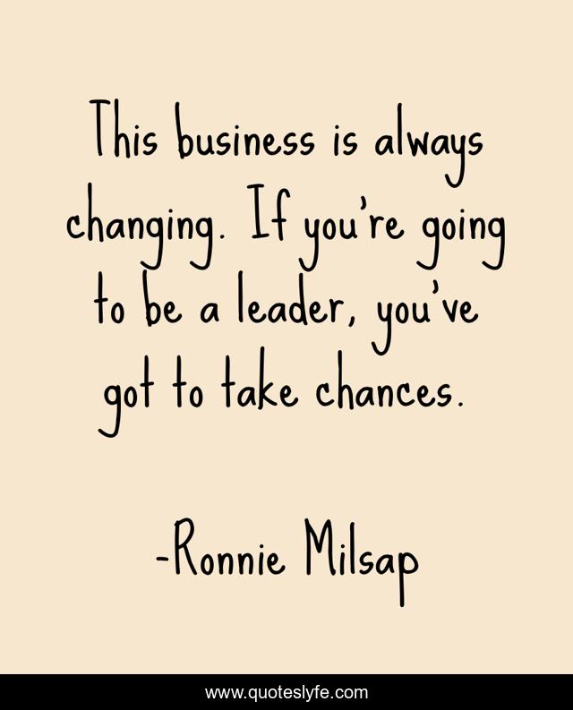 This page presents the quote "This business is always changing. If you're going to be a leader, you've got to take chances.". Author of this quote is Ronnie Milsap. This quote is about chance, leader,.