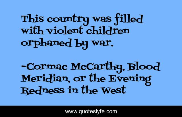 "Cormac McCarthy, Blood Meridian, or the Evening Redness in the West Quotes." Quoteslyfe.com, 2025. Mon. 08 Dec. 2025. <https://www.quoteslyfe.com/quote/This-country-was-filled-with-violent-children-52268>.