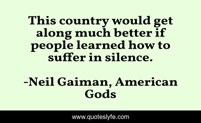 This page presents the quote "This country would get along much better if people learned how to suffer in silence.". Author of this quote is Neil Gaiman, American Gods. .