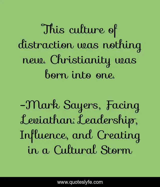 "Mark Sayers, Facing Leviathan: Leadership, Influence, and Creating in a Cultural Storm Quotes." Quoteslyfe.com, 2025. Sat. 06 Dec. 2025. <https://www.quoteslyfe.com/quote/This-culture-of-distraction-was-nothing-new-185345>.