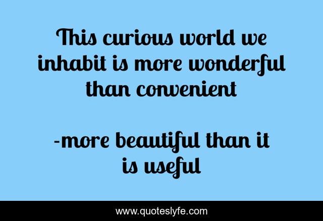 "more beautiful than it is useful Quotes." Quoteslyfe.com, 2025. Sat. 06 Dec. 2025. <https://www.quoteslyfe.com/quote/This-curious-world-we-inhabit-is-more-60552>.