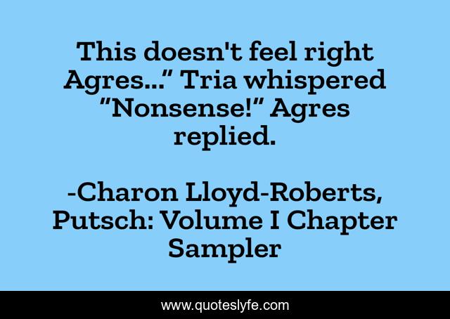 "Charon Lloyd-Roberts, Putsch: Volume I Chapter Sampler Quotes." Quoteslyfe.com, 2025. Fri. 05 Dec. 2025. <https://www.quoteslyfe.com/quote/This-doesn-t-feel-right-Agres-Tria-205664>.