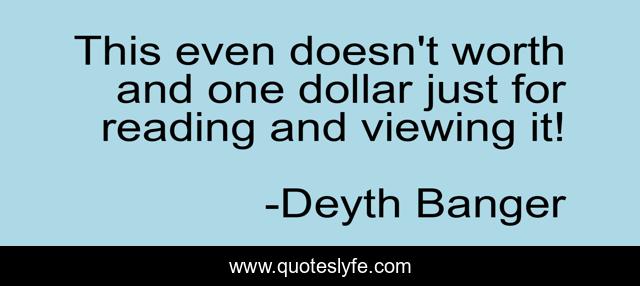 This page presents the quote "This even doesn't worth and one dollar just for reading and viewing it!". Author of this quote is Deyth Banger. This quote is about even, viewing, reading, dollar,.