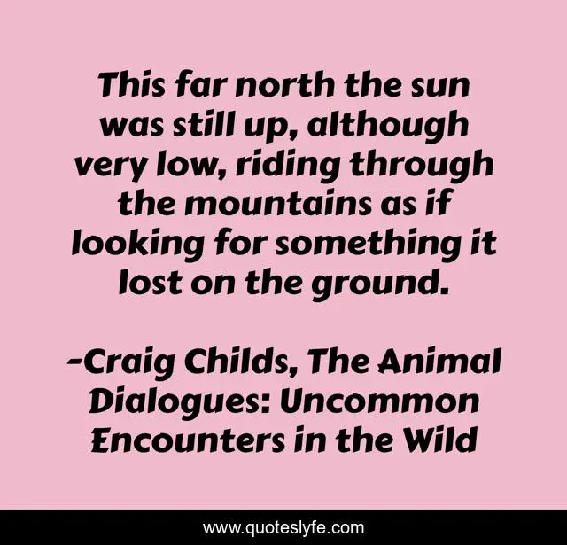 "Craig Childs, The Animal Dialogues: Uncommon Encounters in the Wild Quotes." Quoteslyfe.com, 2025. Sun. 07 Dec. 2025. <https://www.quoteslyfe.com/quote/This-far-north-the-sun-was-still-72467>.