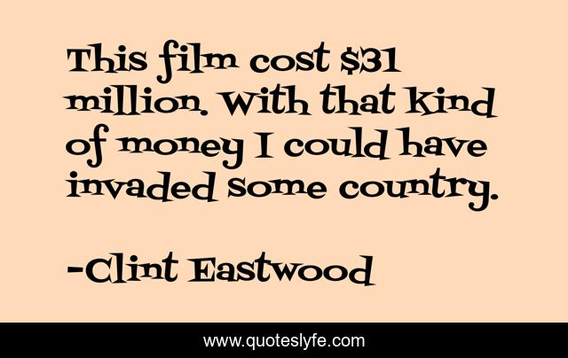 This page presents the quote "This film cost $31 million. With that kind of money I could have invaded some country.". Author of this quote is Clint Eastwood. .