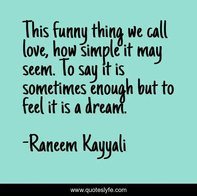 This page presents the quote "This funny thing we call love, how simple it may seem. To say it is sometimes enough but to feel it is a dream.". Author of this quote is Raneem Kayyali. This quote is about love, affection,.