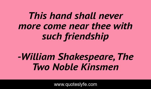 This page presents the quote "This hand shall never more come near thee with such friendship". Author of this quote is William Shakespeare, The Two Noble Kinsmen. This quote is about relationships, friendship, rejection, shakespeare, shakespearean-insult,.