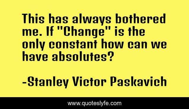 This page presents the quote "This has always bothered me. If "Change" is the only constant how can we have absolutes?". Author of this quote is Stanley Victor Paskavich. .
