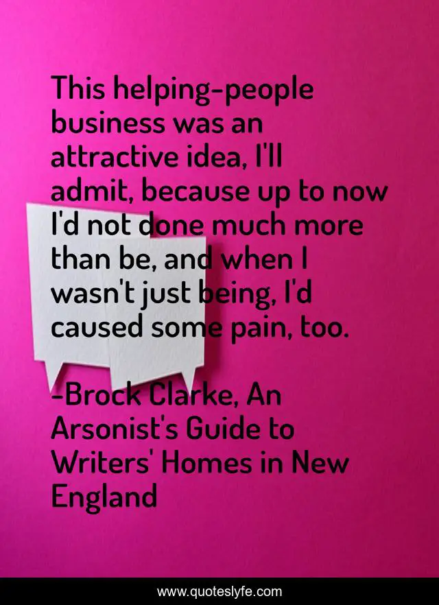 "Brock Clarke, An Arsonist's Guide to Writers' Homes in New England Quotes." Quoteslyfe.com, 2025. Sat. 06 Dec. 2025. <https://www.quoteslyfe.com/quote/This-helping-people-business-was-an-attractive-224469>.