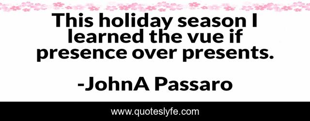 This page presents the quote "This holiday season I learned the vue if presence over presents.". Author of this quote is JohnA Passaro. This quote is about christmas, holidays,.