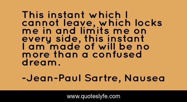 This page presents the quote "This instant which I cannot leave, which locks me in and limits me on every side, this instant I am made of will be no more than a confused dream.". Author of this quote is Jean-Paul Sartre, Nausea. This quote is about existence, truth,.