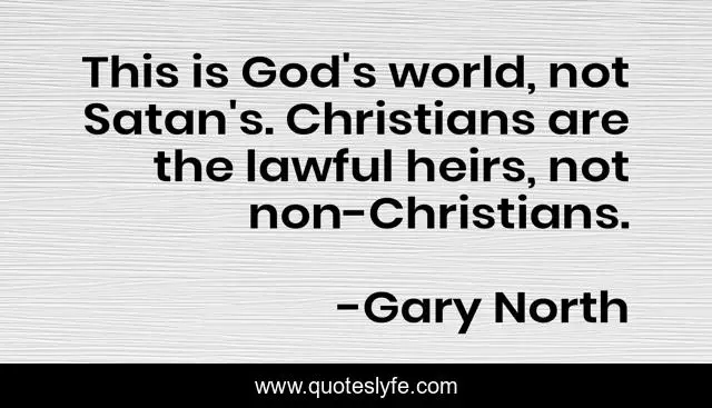 This page presents the quote "This is God's world, not Satan's. Christians are the lawful heirs, not non-Christians.". Author of this quote is Gary North. This quote is about god, satan, world,.
