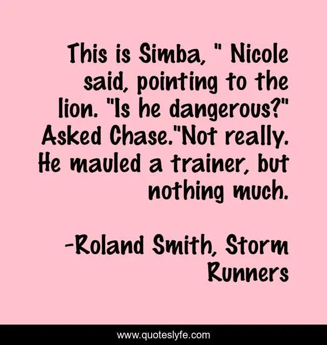 "Roland Smith, Storm Runners Quotes." Quoteslyfe.com, 2025. Fri. 05 Dec. 2025. <https://www.quoteslyfe.com/quote/This-is-Simba-Nicole-said-pointing-to-41071>.