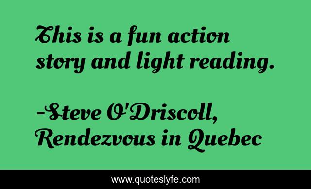 This page presents the quote "This is a fun action story and light reading.". Author of this quote is Steve O'Driscoll, Rendezvous in Quebec. .