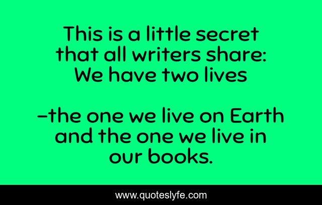 This page presents the quote "This is a little secret that all writers share: We have two lives". Author of this quote is the one we live on Earth and the one we live in our books.. .