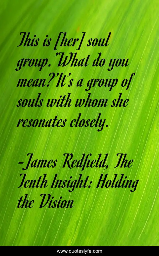 "James Redfield, The Tenth Insight: Holding the Vision Quotes." Quoteslyfe.com, 2025. Sat. 06 Dec. 2025. <https://www.quoteslyfe.com/quote/This-is-her-soul-group-What-do-62770>.