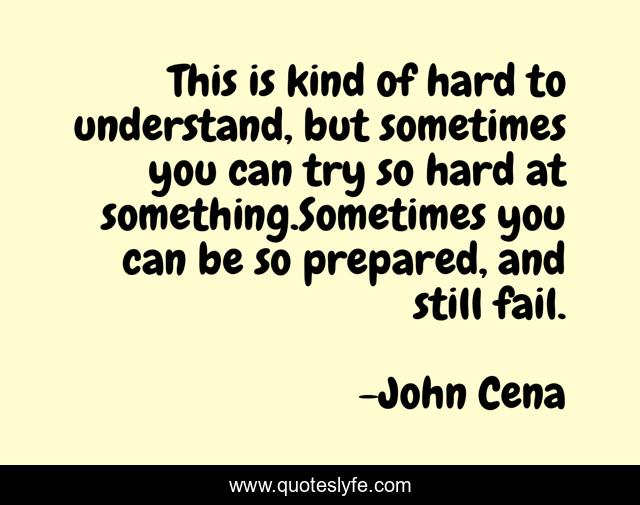 This page presents the quote "This is kind of hard to understand, but sometimes you can try so hard at something.Sometimes you can be so prepared, and still fail.". Author of this quote is John Cena. This quote is about failure, perseverance, sports,.