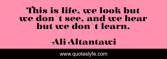 This page presents the quote "This is life, we look but we don't see, and we hear but we don't learn.". Author of this quote is Ali Altantawi. This quote is about life, hear, see, learn,.