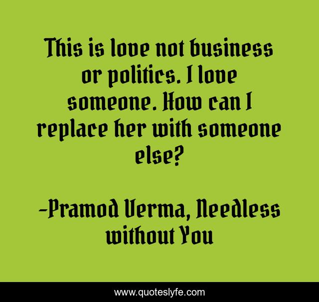 "Pramod Verma, Needless without You Quotes." Quoteslyfe.com, 2025. Tue. 09 Dec. 2025. <https://www.quoteslyfe.com/quote/This-is-love-not-business-or-politics-100542>.