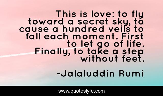 This page presents the quote "This is love: to fly toward a secret sky, to cause a hundred veils to fall each moment. First to let go of life. Finally, to take a step without feet.". Author of this quote is Jalaluddin Rumi. This quote is about love, affection,.