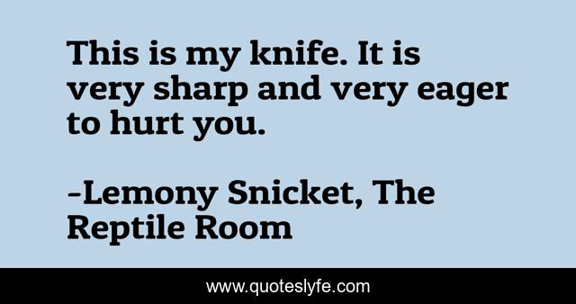 "Lemony Snicket, The Reptile Room Quotes." Quoteslyfe.com, 2025. Fri. 05 Dec. 2025. <https://www.quoteslyfe.com/quote/This-is-my-knife-It-is-very-5696>.