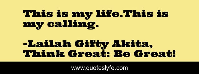 "Lailah Gifty Akita, Think Great: Be Great! Quotes." Quoteslyfe.com, 2025. Sat. 06 Dec. 2025. <https://www.quoteslyfe.com/quote/This-is-my-life-This-is-my-116155>.