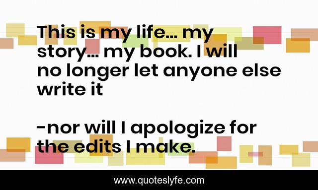 This page presents the quote "This is my life... my story... my book. I will no longer let anyone else write it". Author of this quote is nor will I apologize for the edits I make.. .