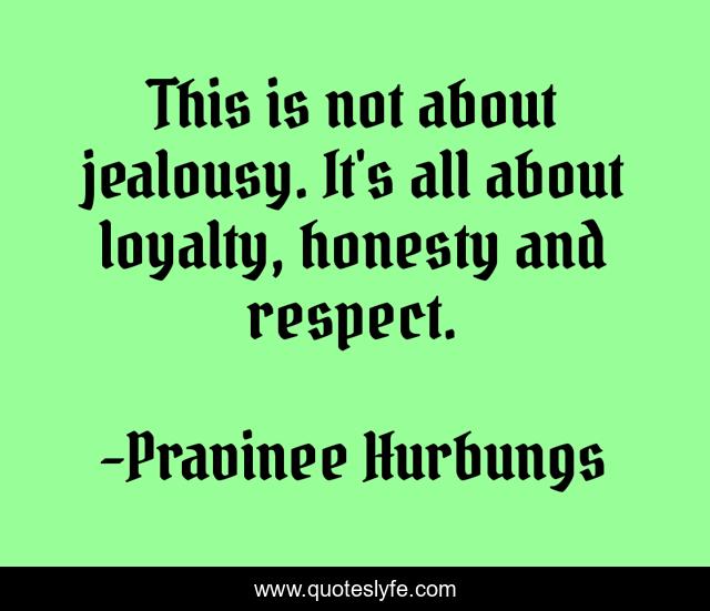 This page presents the quote "This is not about jealousy. It's all about loyalty, honesty and respect.". Author of this quote is Pravinee Hurbungs. This quote is about respect, jealousy, honesty, loyalty-and-disloyalty,.