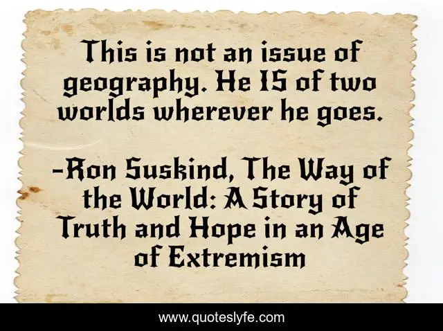 "Ron Suskind, The Way of the World: A Story of Truth and Hope in an Age of Extremism Quotes." Quoteslyfe.com, 2025. Fri. 05 Dec. 2025. <https://www.quoteslyfe.com/quote/This-is-not-an-issue-of-geography-160965>.