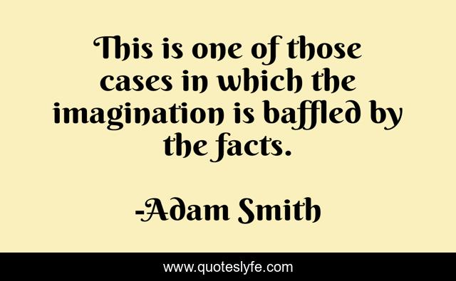 This page presents the quote "This is one of those cases in which the imagination is baffled by the facts.". Author of this quote is Adam Smith. This quote is about facts, cases, which,.