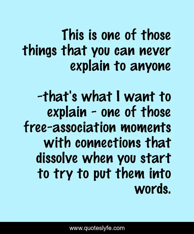 Check all other quotes by that's what I want to explain - one of those free-association moments with connections that dissolve when you start to try to put them into words.