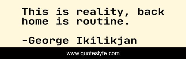 "George Ikilikjan Quotes." Quoteslyfe.com, 2025. Fri. 05 Dec. 2025. <https://www.quoteslyfe.com/quote/This-is-reality-back-home-is-routine-94331>.