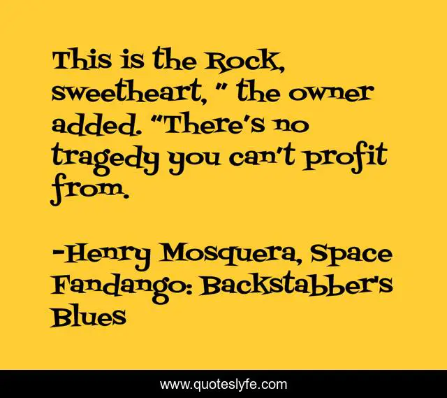 "Henry Mosquera, Space Fandango: Backstabber's Blues Quotes." Quoteslyfe.com, 2025. Sat. 06 Dec. 2025. <https://www.quoteslyfe.com/quote/This-is-the-Rock-sweetheart-the-owner-151534>.