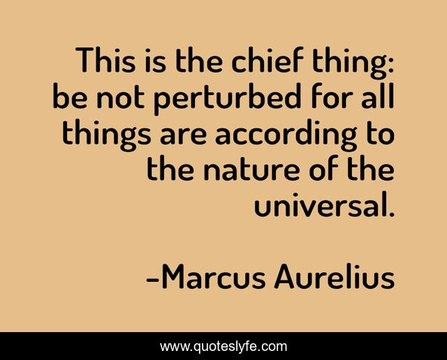 This page presents the quote "This is the chief thing: be not perturbed for all things are according to the nature of the universal.". Author of this quote is Marcus Aurelius. .