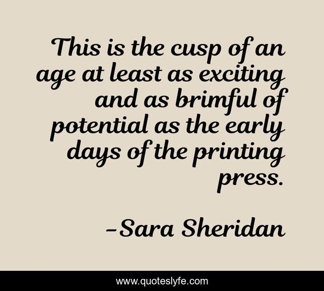 "Sara Sheridan Quotes." Quoteslyfe.com, 2025. Sat. 06 Dec. 2025. <https://www.quoteslyfe.com/quote/This-is-the-cusp-of-an-age-207031>.
