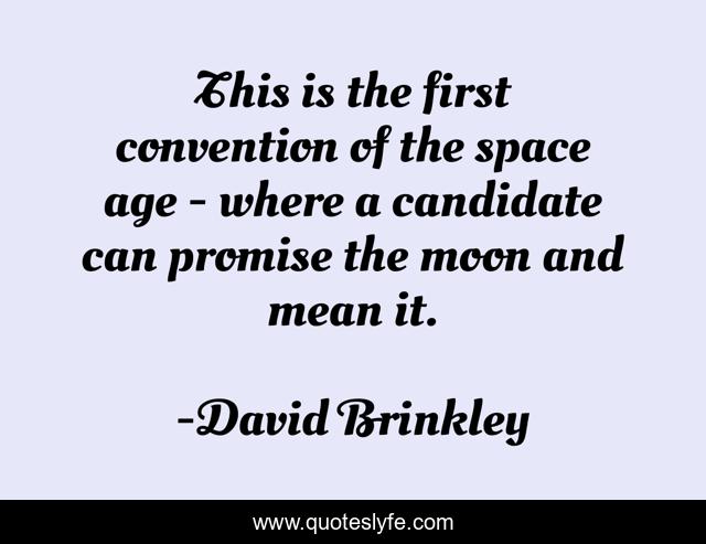 This page presents the quote "This is the first convention of the space age - where a candidate can promise the moon and mean it.". Author of this quote is David Brinkley. .