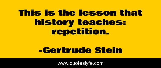 This page presents the quote "This is the lesson that history teaches: repetition.". Author of this quote is Gertrude Stein. This quote is about lesson, repetition, teaches,.