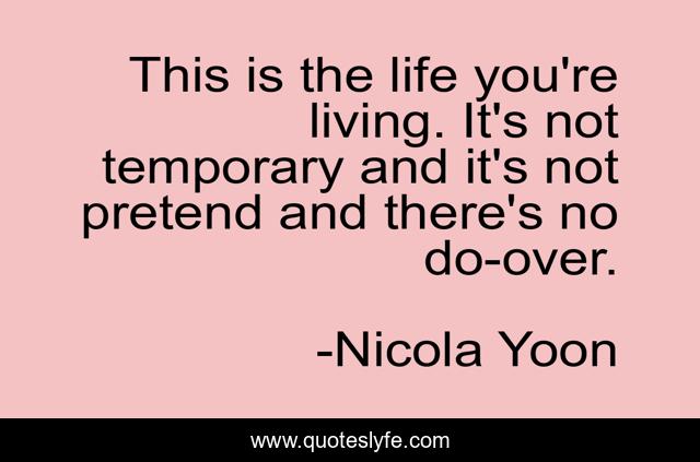 This page presents the quote "This is the life you're living. It's not temporary and it's not pretend and there's no do-over.". Author of this quote is Nicola Yoon. .