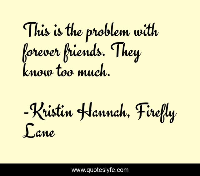 "Kristin Hannah, Firefly Lane Quotes." Quoteslyfe.com, 2025. Fri. 05 Dec. 2025. <https://www.quoteslyfe.com/quote/This-is-the-problem-with-forever-friends-7196>.