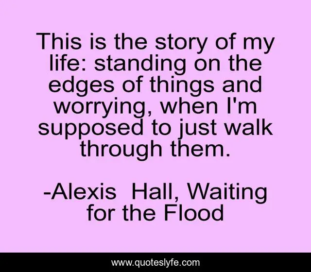 This page presents the quote "This is the story of my life: standing on the edges of things and worrying, when I'm supposed to just walk through them.". Author of this quote is Alexis Hall, Waiting for the Flood. This quote is about worrying, worry,.